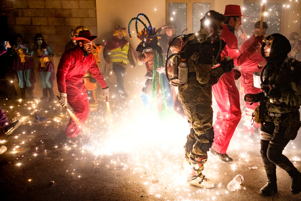 Corre Foc meaning running with fire in Valencian is a night that’s part of the Carnaval in Villar del Arzobispo, a village in the Valencian province of Spain.