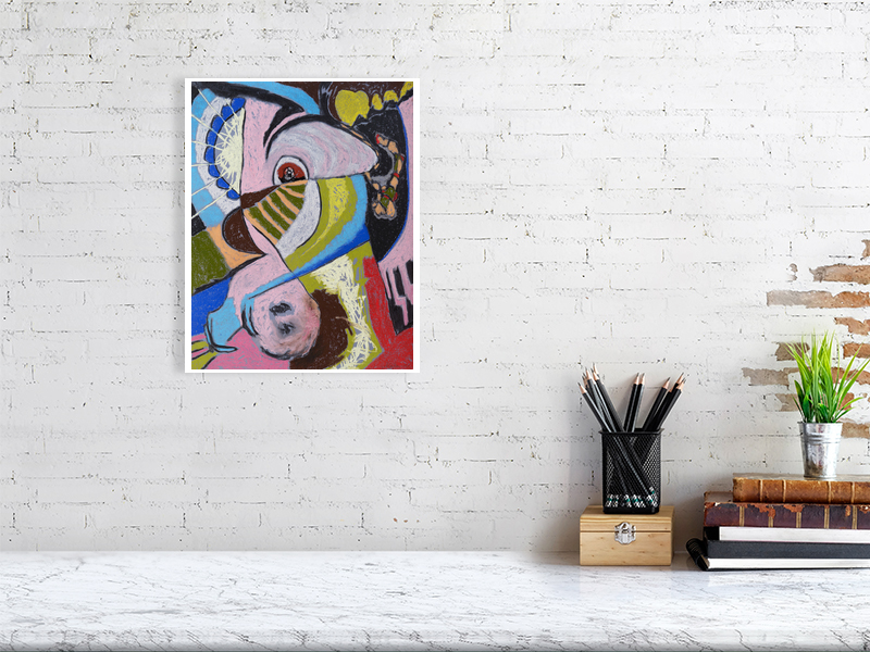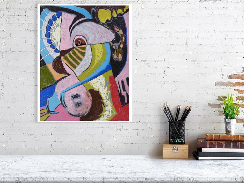 The abstract soft pastel drawings are based upon the years of drawing. A vocabulary of shapes, lines, colours and emotions. Just like music, the narrative of my work is within the work itself.